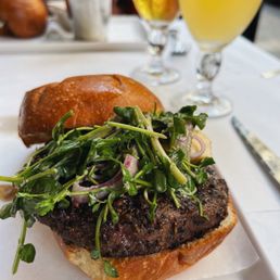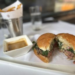 ***Gotta make reservations in advance*** This is one of the hot spots in WV. The bar seats only 8 people. If you don't have a reservation, be ready to wait in line 30 mins before they open at 5 PM. You gotta have the burger!!! It's one of a kind and one of the best-tasting burgers in the city. The chef only makes 12 burgers per day. The beef quality is good, the kick from the black peppercorn takes it to another level, the cheese and the pickles, everything is well balanced. On top of that, that burger dipping sauce is phenomenal The chef's recommendation for this burger is medium rare, but that's too raw/pink for me. I ordered a medium, and it was great! The fries are crispy and seasoned well. The crab cakes croquettes are great! Crispy on the outside and the sauce is perfectly balanced. Overall the food and the ambiance is great. I love that it has a speakeasy vibe to it. It is intimate and that classic old fashioned New York Style takes me back in the old days. I'm giving it a four star because I wasn't impressed with the service from the bartender. Unfortunately he never acknowledged my presence. He only talked to my friend, it's like I didn't exist. So f...that!